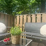 С террасы открывается вид на сад. Кроме того, для вашего удобства предоставляются сушилка.